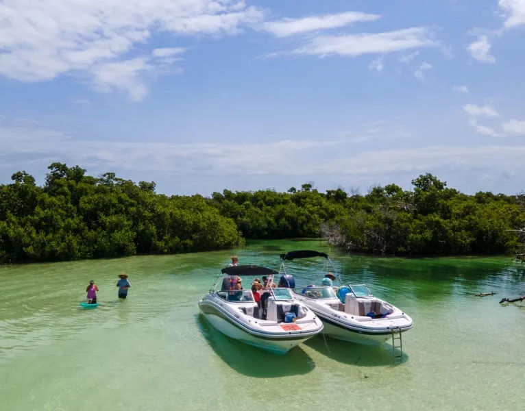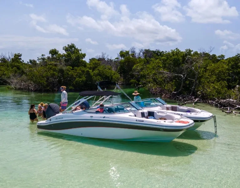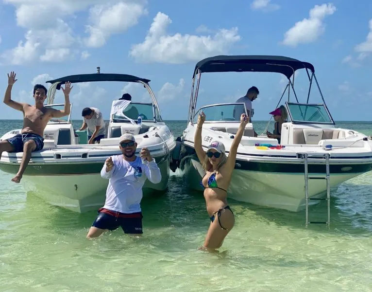 The Key West boat tour will take you to a few breathtaking locations. The first sandbar we’ll stop at is just about 25 minutes from our marina, and there are so many interesting things waiting for us on this journey that it's hard not to enjoy every minute! We'll also cruise around some other sights in between stops. See the mangrove trails of Mud Keys and go mingle with locals at Snipe Point sandbar after. You will not want this day to be over. At Mud Keys, get a taste of how our best destinations look like without spending too much time while keeping the budget low, and you still get the best possible boat and service. You will not want this day to be over, so pack your camera and get ready for an adventure! After 30 minutes boat ride from Key West, we arrive at a mangrove maze made out of a series of islands approximately 11 miles northeast of Key West. Explore the beauty while enjoying some snorkeling or just relax on a beach with crystal clear waters and fine golden sand underneath. At Snipe Point, get access to the huge, beautiful sandbar and a gorgeous beach area. Very tricky to get to, so boat renters are not gonna bother you there. You will meet a lot of locals bringing their families to relax. Both of our boats are new, pretty, and very high-end. They are also identical so everybody gets the same first-class service.